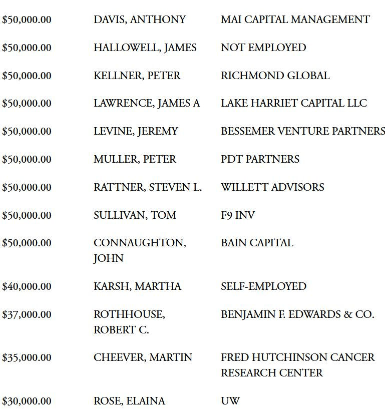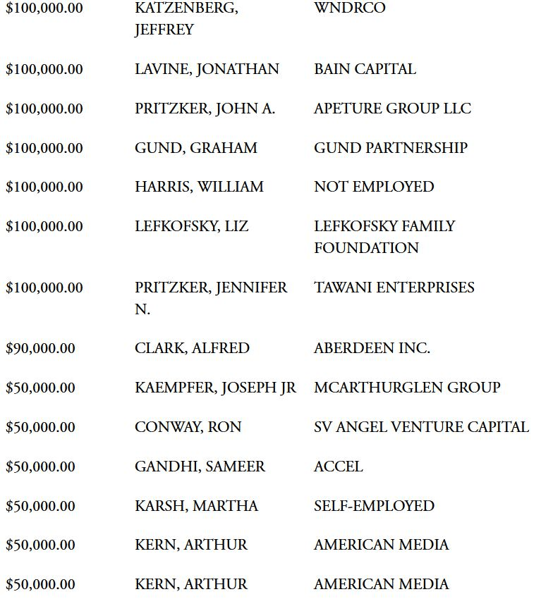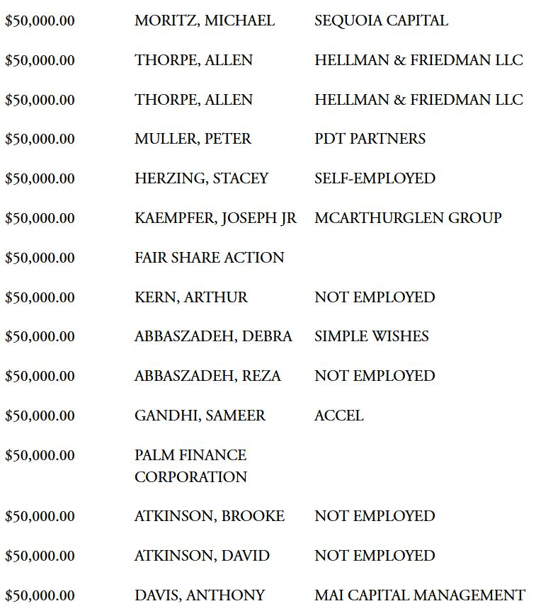 La lista también incluye a Michael Moritz, socio de la firma de capital riesgo Sequoia, que donó una suma considerable en tres donaciones en mayo, junio y julio de 2020: una por valor de 50.000 dólares y dos por valor de 25.000 dólares.