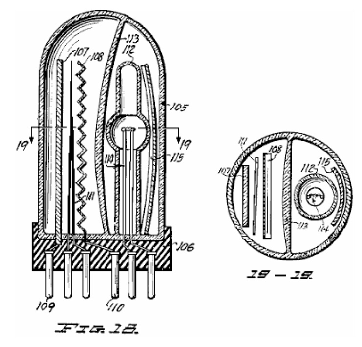 En su libro “La máquina de energía de T. Henry Moray”, Moray B. King proporciona más información sobre este sistema. Afirma que a Moray se le negó una patente debido a que el examinador no podía ver cómo el dispositivo podía generar tanta energía cuando los cátodos de la válvula no estaban calentados. Moray recibió la patente estadounidense 2.460.707 el 1 de febrero de 1949 para un aparato electroterapéutico, en la que incluyó la especificación de las tres válvulas utilizadas en su dispositivo de potencia, aparentemente porque quería que estuvieran cubiertas por una patente. Por lo que puede verse, la válvula que se muestra aquí es un tubo oscilador. Moray afirmó que este tubo tenía una capacitancia muy alta de 1 Faradio cuando funcionaba a su frecuencia resonante. A Moray le gustaba usar cuarzo en polvo como dieléctrico en los condensadores que fabricaba, y tenía la costumbre de mezclar sales de radio y minerales de uranio con el cuarzo. Estos materiales pueden ser importantes para producir ionización en estos tubos y esa ionización puede ser importante para aprovechar el campo de energía.