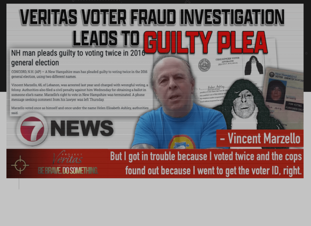 [CONCORD, N.H. – 19 de febrero de 2021] Vincent Marzello, un individuo que votó dos veces en las elecciones de 2016, se declaró culpable de un cargo de fraude electoral en New Hampshire como resultado directo de una investigación del Proyecto Veritas.