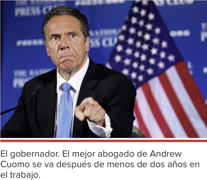 El gobernador. El principal abogado de Andrew Cuomo se va después de menos de dos años en el trabajo, la última renuncia en una ola de salidas de la administración asediada por escándalos de duelos que involucran hogares de ancianos y acusaciones de acoso sexual.