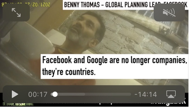Project Veritas lanzó hoy un nuevo video encubierto en el que Benny Thomas, líder de planificación global de Facebook, reveló que Facebook tiene demasiado poder y que la acción del gobierno no solo está justificada, sino que es necesaria para limitar el daño que el gigante de las grandes tecnologías hace a la sociedad.