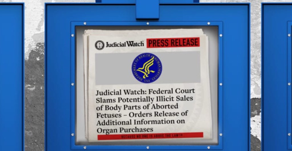 (Washington, DC) Judicial Watch anunció hoy que un tribunal federal ordenó al Departamento de Salud y Servicios Humanos (HHS) de los EE. UU. Que divulgue información adicional sobre sus compras de órganos extraídos de fetos humanos abortados. El tribunal también encontró que «hay motivos para cuestionar» si las transacciones violan la ley federal que prohíbe la venta de órganos fetales. Documentos previamente descubiertos en esta demanda muestran que el gobierno federal exigió que los órganos fetales comprados sean «frescos y nunca congelados».