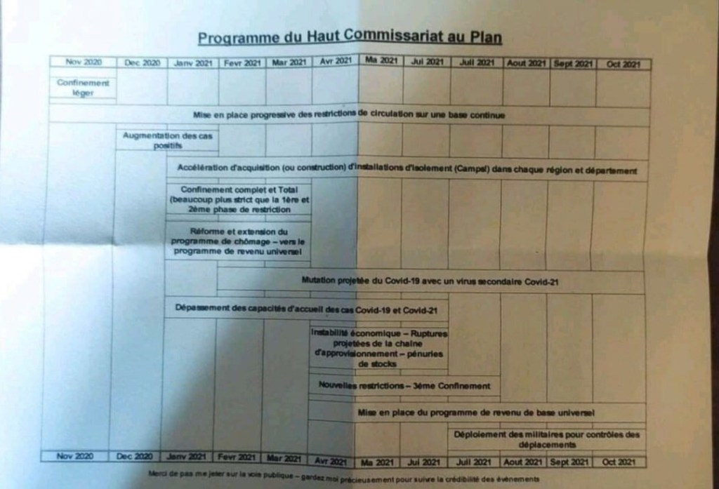 Esta vez la fuente de la información reservada no es un correo electrónico, sino un cronograma en el que se presentan las próximas fases del coronavirus para los siguientes meses y semanas, hasta la realización definitiva del reseteo global.