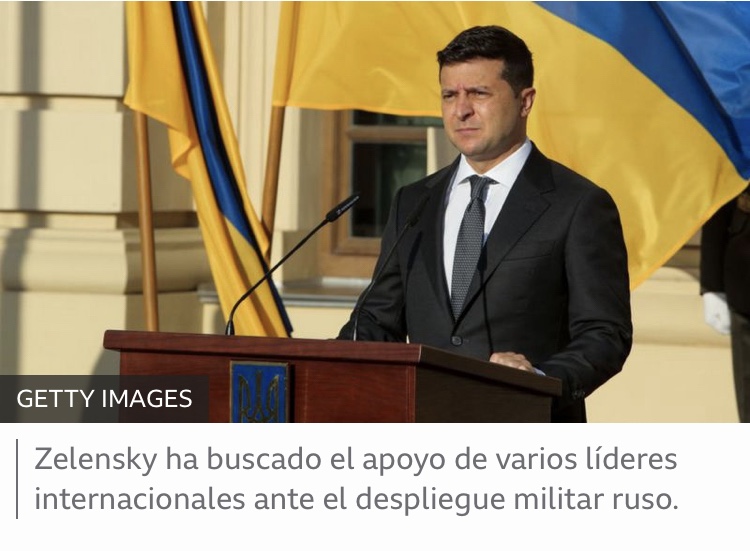 «Podrían constituir entre cinco y seis grupos de batallones tácticos, según expertos militares. El ejército ucraniano declaró que más de 20 de esos grupos pueden estar estacionados en las cercanías de las fronteras de Ucrania», indica.