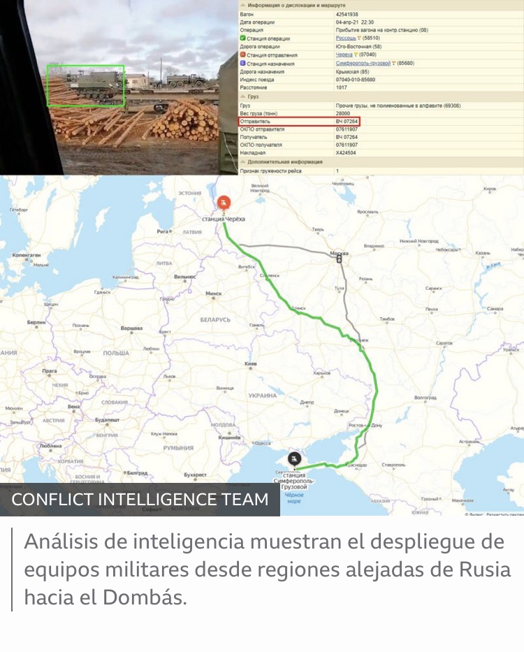 Desde finales de marzo, imágenes de satélite y videos filtrados en redes sociales comenzaron a mostrar un amplio despliegue de artillería pesada y tropas rusas hacia la región del Dombás, en el área fronteriza en el este de Ucrania, donde se inició en 2014 un conflicto que todavía no ha terminado.