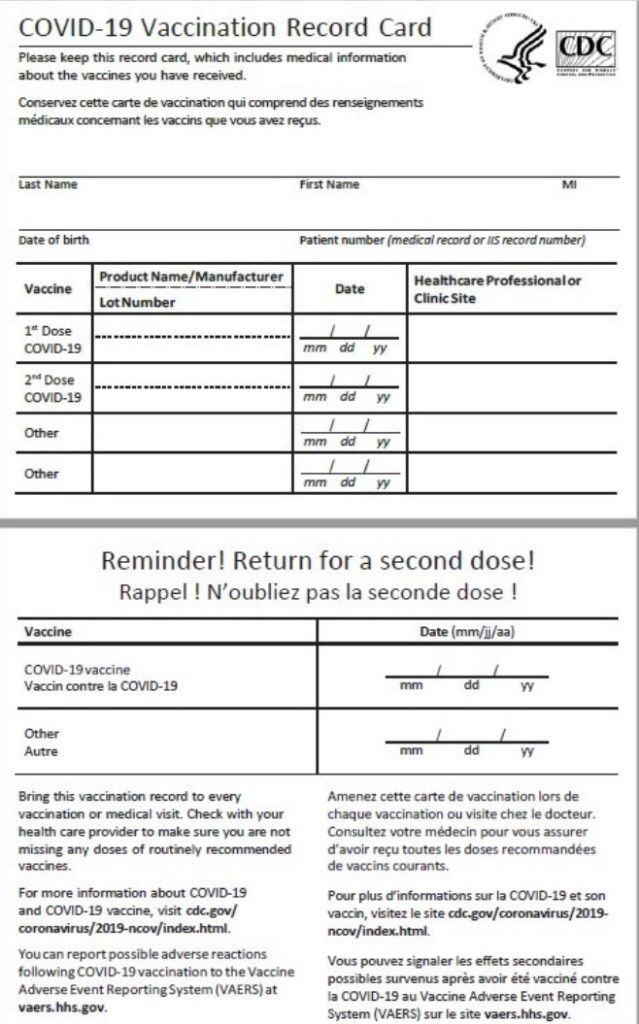 Pero mucho antes de esto, los CDC estaban repartiendo tarjetas de identificación de la vacuna COVID a diferentes gobiernos estatales.
