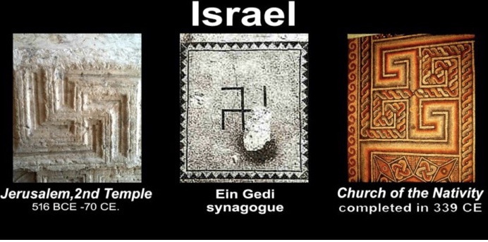 En Medio Oriente, se la encuentra incluso en sinagogas judías, y hasta la tumba de Jesucristo está decorada con varias esvásticas.