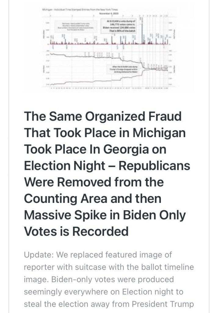 En Atlanta, los republicanos fueron retirados de las instalaciones y luego los demócratas sacaron maletas de debajo de la mesa y comenzaron a empujar las mismas papeletas a través de las máquinas de tabulación dos y tres veces. Esto fue capturado en video, pero no se han hecho cargos: