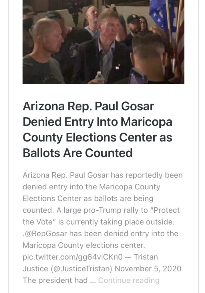 En Arizona, el representante. A Gosar se le impidió entrar en el área de recuento de votos. Todo el estado sabía que algo corrupto estaba pasando.