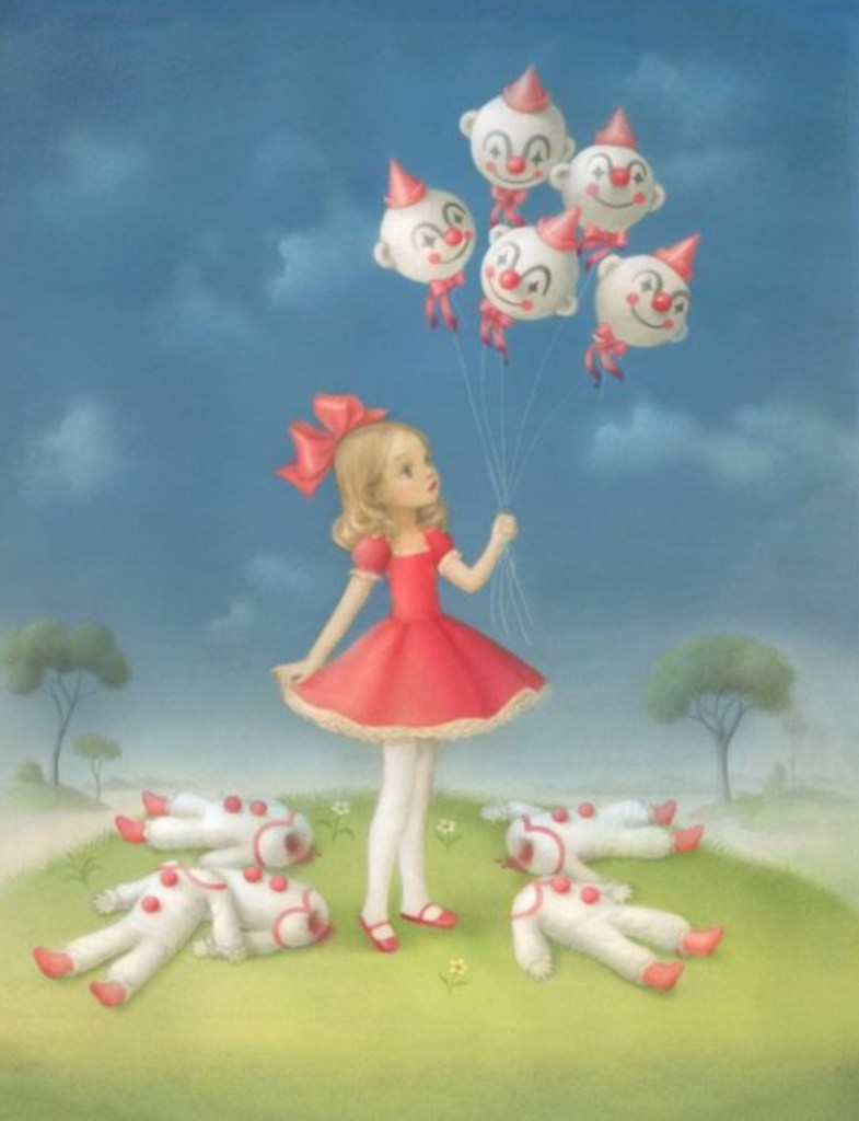 El nombre de la pintura “Tú también flotarás” alude ominosamente a la disociación de la niña.