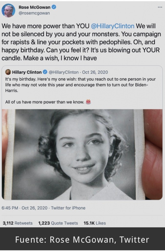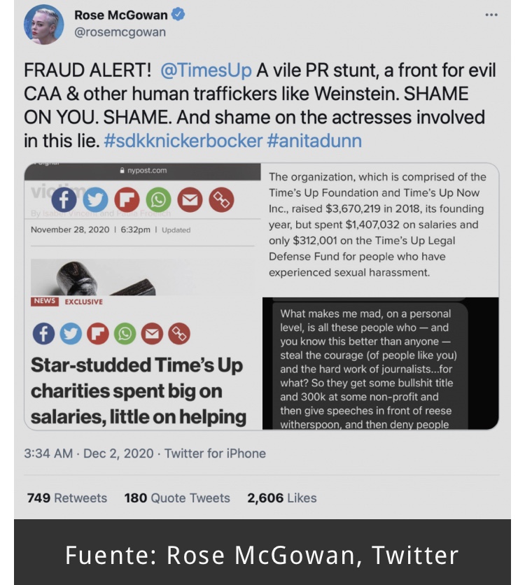 «Mi persecución y despertar de ser demócrata tenía mucho que ver con lo que hago y lo que digo ahora. Tanto sobre darse cuenta de lo duro que es un culto, y lo mucho que le hace a las mujeres y a la gente que dice que va a ayudar», dijo McGowan mientras también agregaba, «entonces, ¿por qué no han logrado nada?»