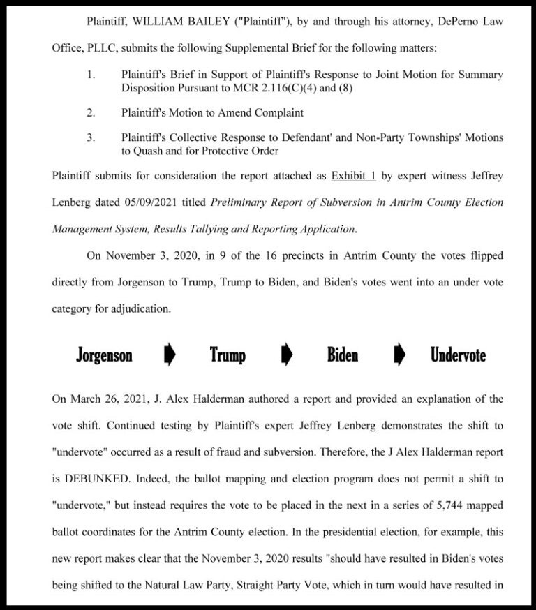 Esto parece ser bastante importante. En la demanda del condado de Antrim, Michigan, el abogado del demandante William Bailey acaba de presentar evidencia directa de la manipulación del conteo de boletas dentro del sistema electrónico de conteo de boletas.