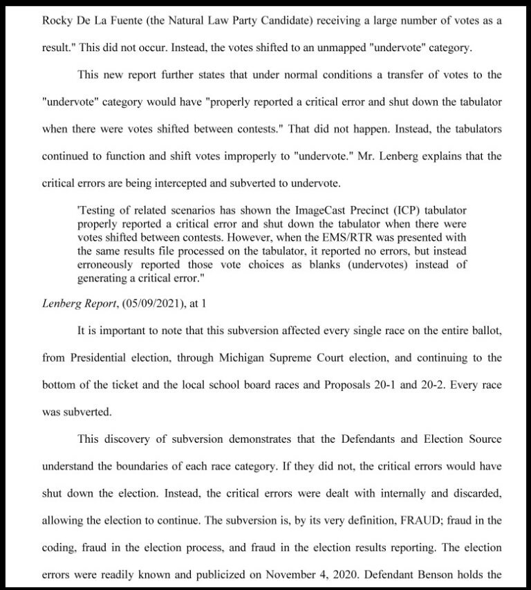 El abogado Matthew DePerno ha presentado los resultados de una auditoría forense que muestra cómo se manipularon los votos en el sistema de tabulación del condado. [Resumen complementario aquí] – [Resultados de la auditoría forense aquí]