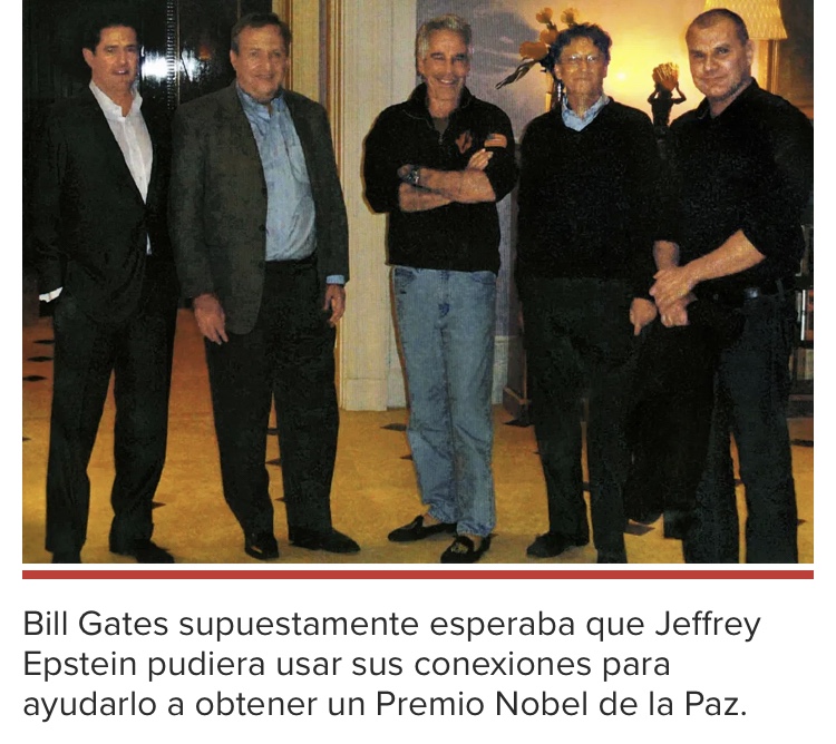 Pero Gates «pensó que Jeffrey podría ayudarlo, que conocería a las personas adecuadas, o algún tipo de manera de masajear las cosas, para que pudiera obtener el Premio Nobel de la Paz, que es lo que Bill quiere más que cualquier otra cosa en el mundo», dijo el personal.
