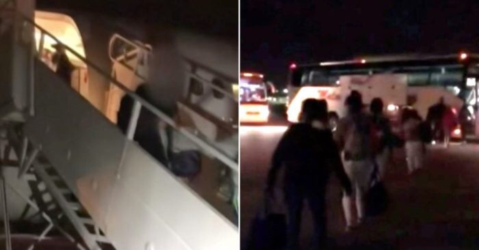 El video compartido por 3WRCB, muestra a grupos de entre 30 y 50 niños caminando desde aviones a la 1.30 am del viernes por la mañana y nuevamente el sábado por la noche.