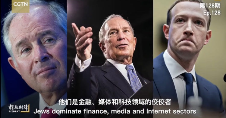 «Algunas personas creen que la política pro-Israel de Estados Unidos se remonta a la influencia de los judíos ricos en los EE. UU. y el lobby judío sobre los responsables de la política exterior de Estados Unidos. De hecho, hay más de 5 millones de judíos en los Estados Unidos. En la rica lista de Forbes, hay 18 judíos entre los 40 primeros en los EE. UU.», dijo Junfeng. «Los judíos dominan los sectores financiero, de los medios de comunicación y de Internet, así que ¿tiene poderosos grupos de presión como algunos dicen? Posible».
