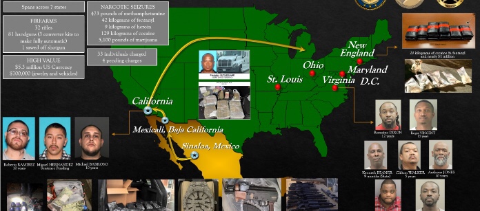 La operación descubrió y desmanteló siete células violentas de organizaciones de tráfico de drogas en el área de DC, Maryland y Virginia, y resultó en 33 individuos de alto nivel acusados, cientos de libras de drogas mortales retiradas de las calles, $ 5.4 millones en moneda estadounidense. , 32 rifles, 81 pistolas y otros bienes incautados.