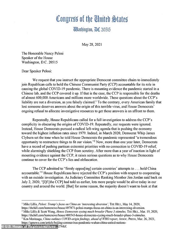 Los republicanos elevaron sus demandas de una investigación ya que los miembros de la Cámara estaban listos para presentar dos nuevos proyectos de ley relacionados con COVID, uno que permitiría a las familias de las víctimas demandar a China y otro que establecería una comisión al estilo del 11 de septiembre para investigar los orígenes de la pandemia.
