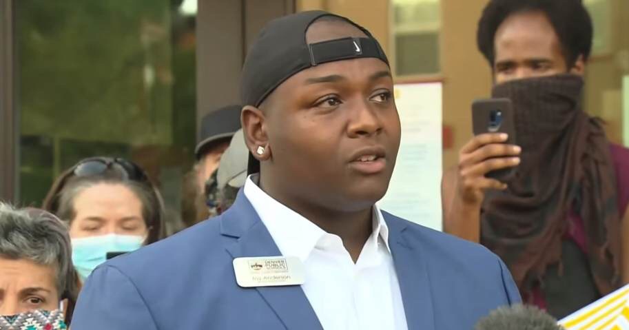 Anderson aparentemente resultó herido por la policía cuando protestaba contra la limpieza de un campamento para personas sin hogar. Prometió que la «Ciudad de Denver, jodiste con la persona equivocada» mientras usaba su placa de identificación oficial de la junta escolar.