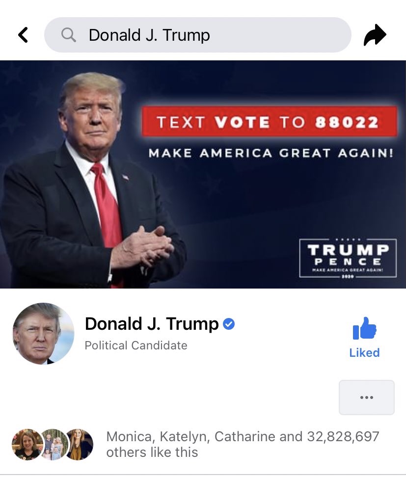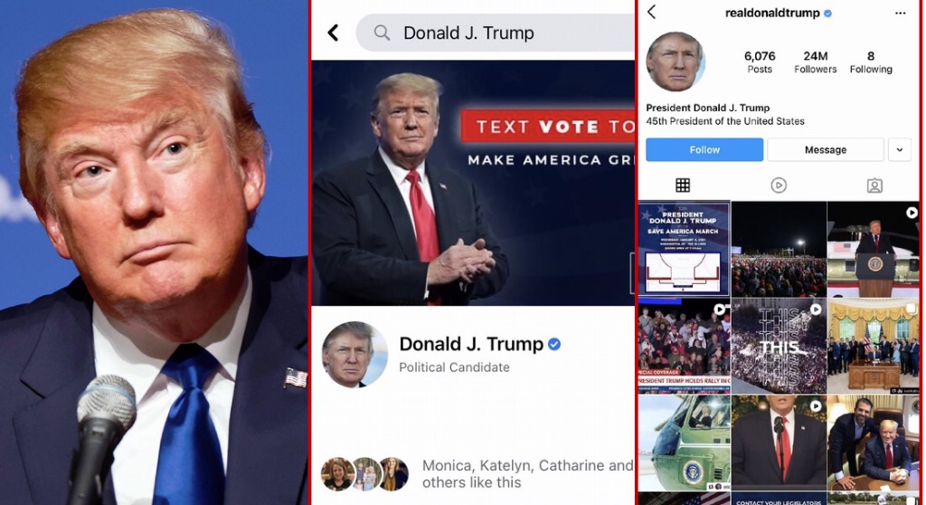 Las cuentas de redes sociales de Donald Trump en Instagram y Facebook parecen estar restauradas. El encabezado de Facebook se actualizó con su alerta «Envía un mensaje de texto al 88022»: