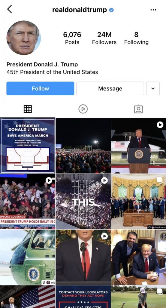 Trump está de vuelta en Instagram y Facebook. pic.twitter.com/EsohdQlSgo– Henry Rodgers (@henryrodgersdc)