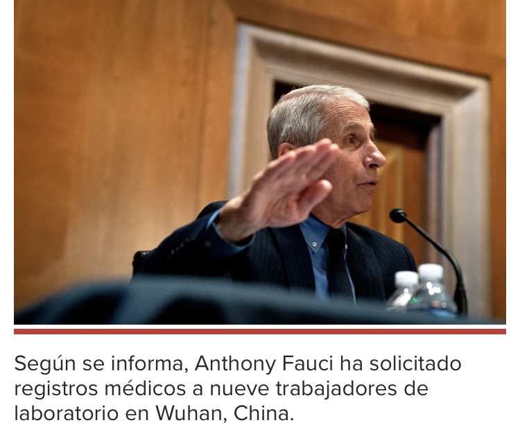 Fuente: https://nypost.com/2021/06/04/fauci-wants-china-to-release-medical-records-from-wuhan-lab/