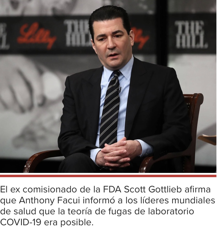«Me dijeron en ese momento, en la primavera [de 2020], que el Dr. Fauci había ido a una reunión de líderes mundiales de salud en Europa en torno a la Asamblea Mundial de la Salud, y en realidad les informó sobre la información que estaban viendo, que esto podría haber sido una posible fuga de laboratorio, que esta cepa parecía inusual», dijo Gottlieb a CBS News el domingo.