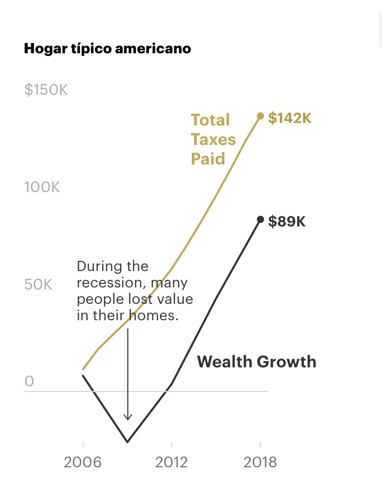 Es decir, por cada 100 dólares de crecimiento de la riqueza durante ese período, los estadounidenses típicos pagaron 160 dólares en impuestos.