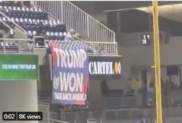 Los partidarios de Trump desplegaron una pancarta de «Trump ganó» el miércoles por la noche en el partido de los Marlins.