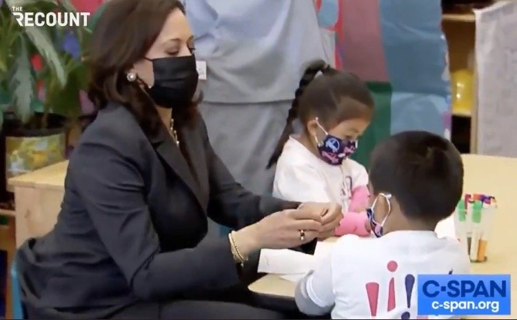 Harris hizo el viaje sobre sí misma y dijo a los niños en edad preescolar que es la «primera vicepresidenta que es una niña, no un niño».