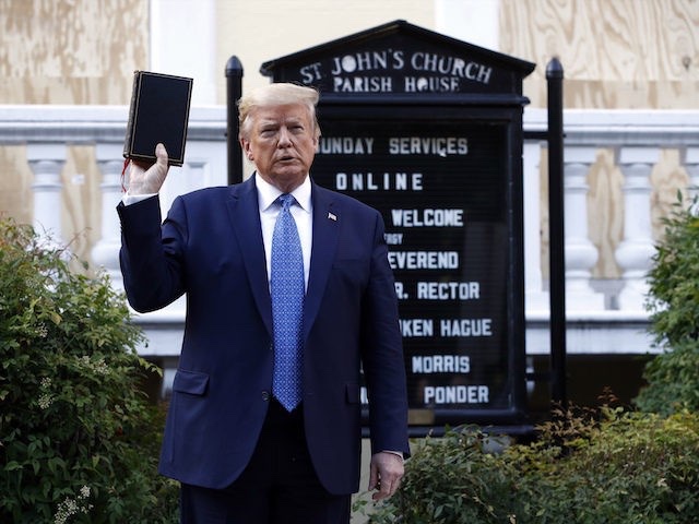 En junio pasado, el expresidente Trump denunció los violentos disturbios que impregnaron el país y caminó por Lafayette Square hasta St. Iglesia Episcopal de Juan, sosteniendo una Biblia a su llegada. La noche anterior, los alborotadores prender fuego parcialmente a la histórica iglesia.
