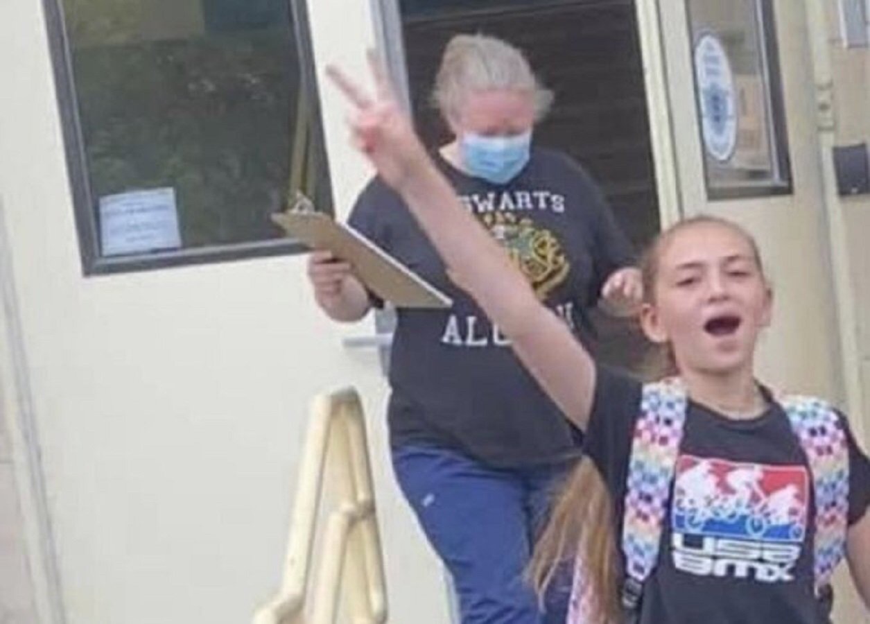 “Hoy es el día en el que me dije a mí mismo que no, si voy a pasar todo el día escolar debido a la constante presión de los maestros que me gritan que me ponga un bozal. Hoy fue el día en que dije que no. Me echaron de la escuela porque no cumplía con las órdenes de mascarillas en un aula mal ventilada. Esta es la verdadera definición de abuso infantil en mi opinión. No dejas un perro en el auto, ciertamente no controlas que los niños estemos en un aula calurosa con una máscara sobre la cara ”, escribió. “Todos los administradores pueden sentarse y ladrar órdenes desde sus oficinas con aire acondicionado en trajes de negocios sin enmascarar. No sé qué afirmación intentan hacernos. Hoy fue el día en que no dije nada más. Espero que esta imagen se vuelva viral y saber que tienes el control de tu cuerpo La junta de educación no lo es.