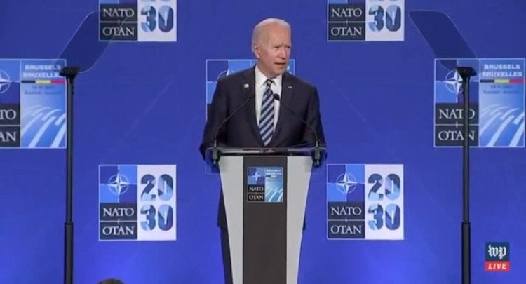 Dementia Joe golpeó al presidente Trump y tropezó con su discurso de Teleprompter de la OTAN hoy pronunciando mal los nombres y lanzando amenazas a Putin y Rusia.