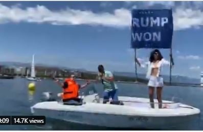 Noor Bin Laden, partidaria de Trump, mostró una gran pancarta de «Trump ganó» desde su barco.