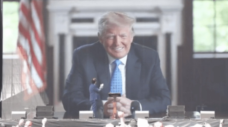 El presidente Trump, el invitado que todos esperaban escuchar y ver, apareció en una enorme pantalla virtual. ¡Y compartió un mensaje increíble con sus seguidores!