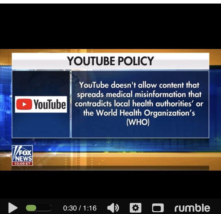 Maria Bartiromo: «Lo que es tan absurdo, senador Johnson, es la forma en que continúa siendo censurado. Así que ahora estás excluido de YouTube de nuevo, temporalmente. YouTube te suspendió de nuevo la semana pasada por lo que dicen que es una violación de la «política de mala conducta» de la plataforma. ¿Qué pasó la semana pasada, senador?