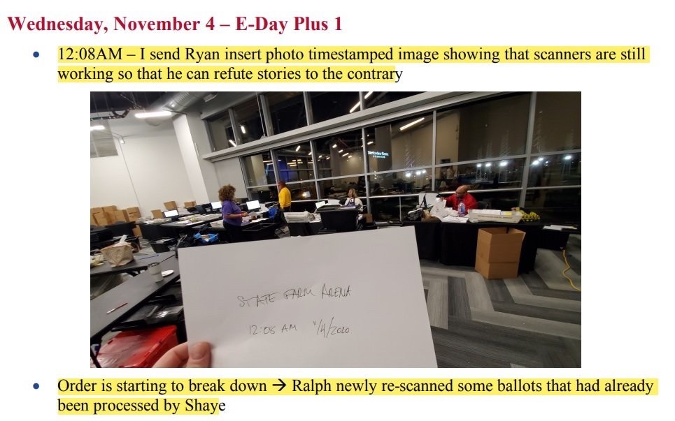 En el informe, Carter Jones señala que los votos se estaban llenando porque los «escáneres siguen funcionando». Jones luego comparte que Ralph ‘reescaneó algunas papeletas que ya habían sido procesadas por Shaye».