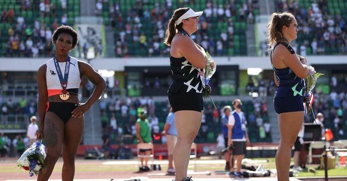 La lanzadora de martillo estadounidense, Gwen Berry, dio la espalda a la bandera de Estados Unidos en la ceremonia de entrega de medallas en los ensayos olímpicos de Estados Unidos, antes de acabar cubriéndose la cara con una camiseta, diciendo que era una “falta de respeto” hacer sonar el himno nacional después de haber ganado una medalla de bronce.