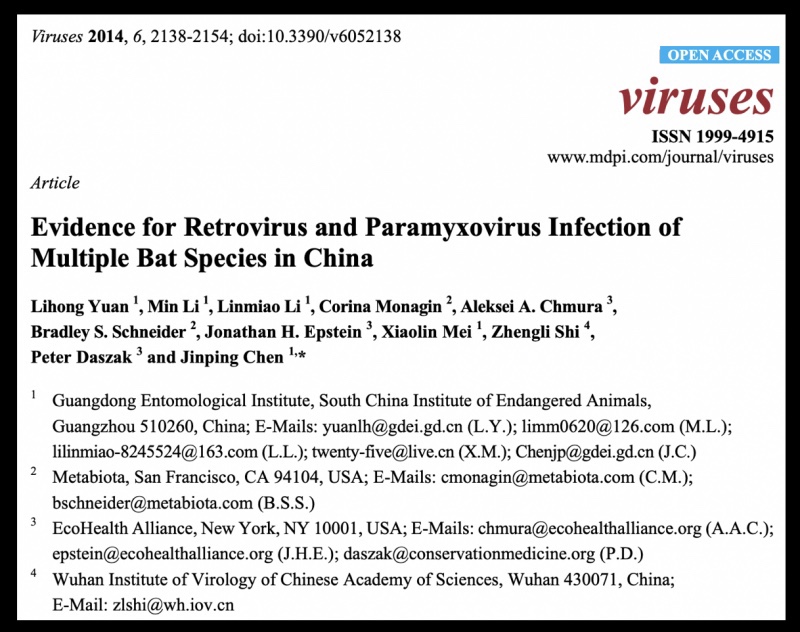 Shi Zhengli, Director del Centro para Enfermedades Infecciosas Emergentes en el Laboratorio Wuhan del Partido Comunista Chino, es uno de los investigadores incluidos en la mencionada publicación de 2014. Peter Daszak, que recientemente fue retirado del panel Lancet COVID-19 debido a muchos conflictos de intereses como «colaborador de larga data» del Instituto de Virología de Wuhan, es nombrado como colaborador.