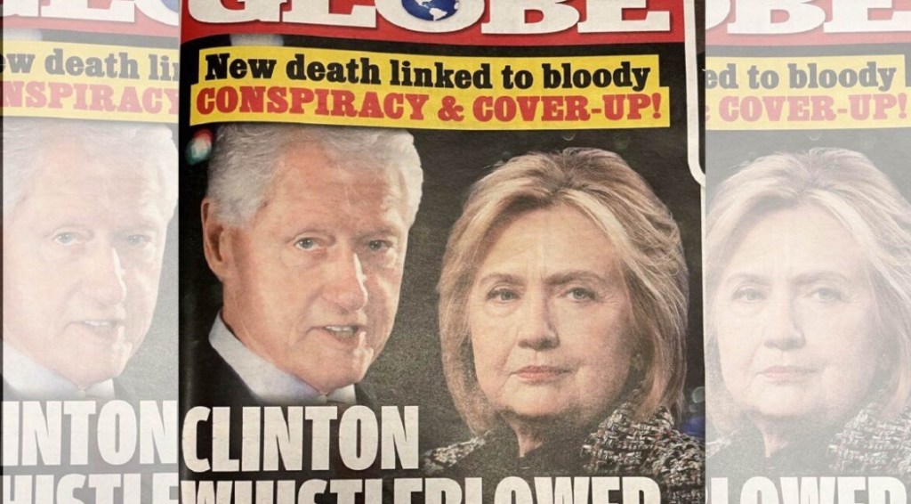 Eso es lo que notó un usuario de Twitter cuando estaba en la tienda de comestibles: la portada del «tabloide» del Globe tenía a Bill y Hillary en la portada con un gran titular sobre su llamado «complot asesino» para matar al reportero que rompió historia de asfalto y hacer que parezca un suicidio.
