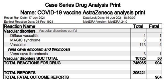Esto hace que el número real de reacciones adversas y muertes reportadas al esquema sea bastante aterrador cuando se tiene en cuenta la infra-reportación. Porque según la 21aactualización publicada por el Gobierno del Reino Unido / MHRA sobre las reacciones adversas a las vacunas Covid-19, ha habido 973.425 reacciones adversas que van de leves a extremadamente graves y 1.356 muertes hasta el 16 de junio de 2021.