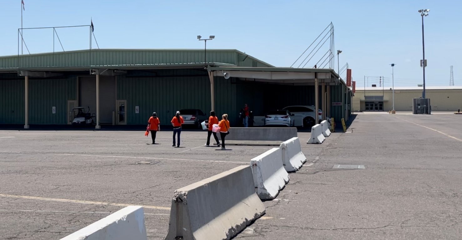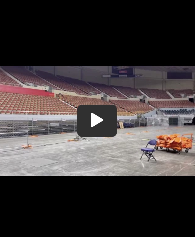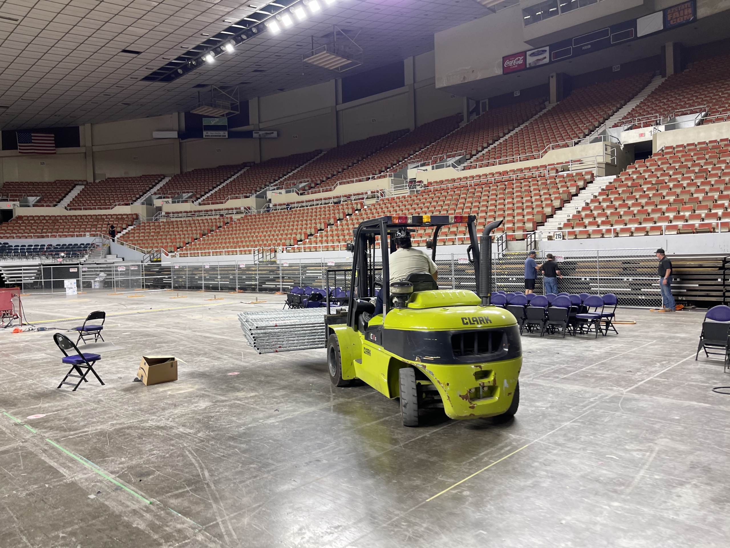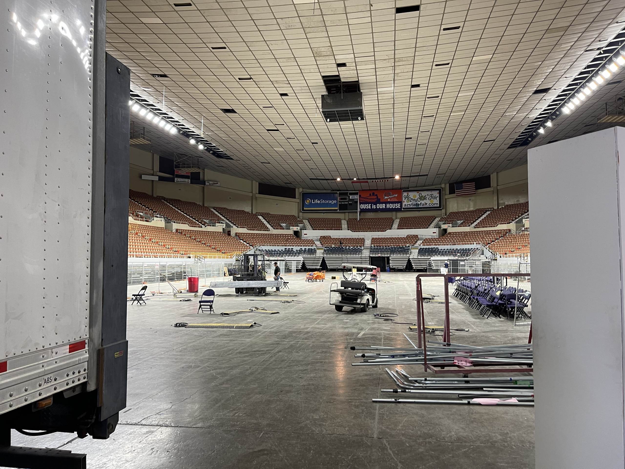 Los trabajadores todavía estaban moviendo algunos materiales, incluyendo cercas y sillas fuera del coliseo, pero como se puede ver, el coliseo está casi vacío.