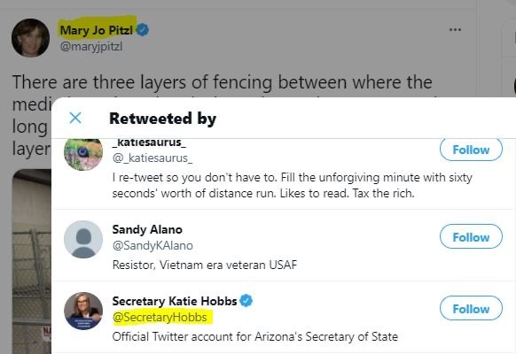 Su tuit fue retuiteado por la Secretaria de Estado Katie Hobbs.