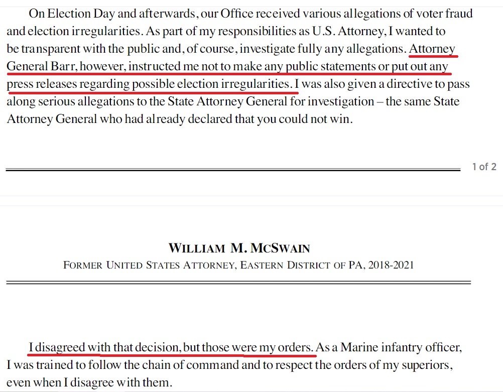 Ayer, el presidente Trump dijo a la multitud del CPAC en Texas que recientemente un ex fiscal de los Estados Unidos en Pensilvania envió al presidente una carta indicando que el Fiscal General Barr le dijo que no investigara los crímenes electorales en Pensilvania.