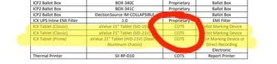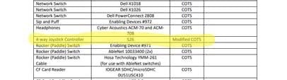 Tenga en cuenta anteriormente que las tabletas ICX se enumeran como «COTS» en lugar del siguiente ejemplo de hardware COTS que ha sido modificado y se enumera como «COTS modificado»: