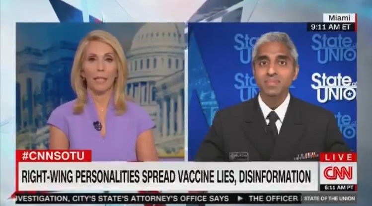 Dana Bash de CNN preguntó el domingo al Cirujano General de EE. UU. si los medios conservadores como Fox News están matando personas debido a su retórica de vacunación contra Covid.