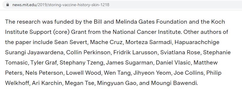 En diciembre de 2019, se hizo público que la Fundación Bill y Melinda Gates proporcionó fondos para un proyectoque tiene como objetivo almacenar el historial de vacunación de una persona en un patrón de tinte, invisible a simple vista, que se administra debajo de la piel.