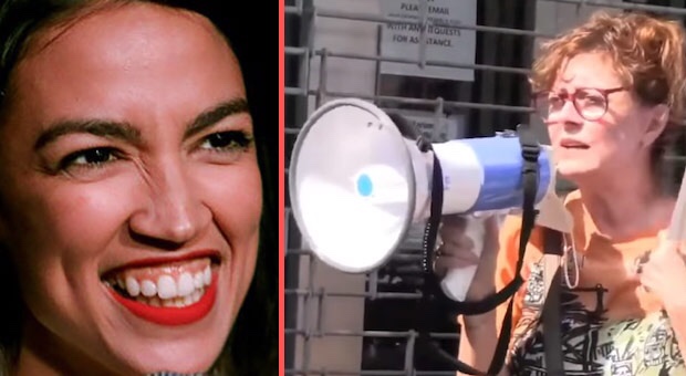 De izquierda Hollywood la actriz Susan Sarandon fue visto principales protestas fuera de la oficina del extremo izquierdo-Rep. Alejandría Ocasio-Cortés (D-NY), expresando su decepción en el demócrata legislador.