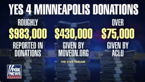El Open Society Policy Center, una organización sin fines de lucro de defensa en la red de Soros, proporcionó una donación de $500.000 a Vote Yes 4 Minneapolis en noviembre, un mes después de su establecimiento, según muestran los registros. El grupo, una coalición de al menos 33 organizaciones activistas, está impulsando una iniciativa electoral para enmendar la carta de la ciudad para reemplazar el departamento de policía con una agencia de seguridad pública.