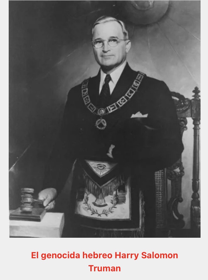 Sin embargo, pese a todas estas atrocidades, no hubo ningún Nüremberg para los verdaderos genocidas de la humanidad. Ni para el rey lacayo de los sionistas, ni para la Masonería de Inglaterra, ni para Churchill y menos para Harry Salomón Truman, encargado éste del mayor genocidio a las dos únicas ciudades católicas del Japón: Hiroshima y Nagasaki.